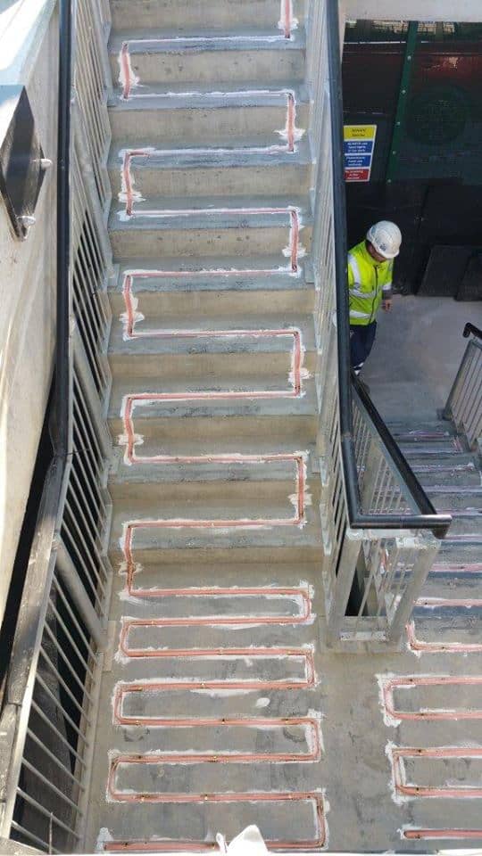 La aplicación de sal o de descongelador químico puede provocar una contaminación ambiental y requiere una replicación constante para mantener su efectividad. Las superficies críticas y los accesos / salidas de emergencia deben contar con una solución práctica, segura y confiable al problema presente.